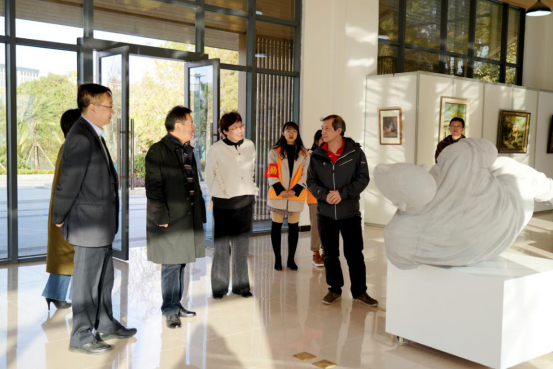 省教育厅职成处何泽云处长一行还考察了物联网体验馆、艺术与传媒学院学生作品展、商学院茶艺室、武软客厅展等地。