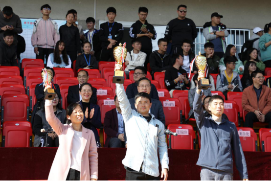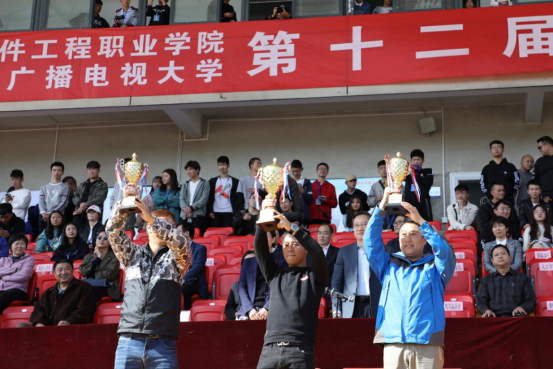为期一天半的紧张比赛,全校师生收获了体育运动的快乐。本届运动会,信息学院分别以326分、146分、134分勇夺团体、男子团体、女子团体总分第一,团体总分亚军、季军分别由计算机学院、商学院斩获;计算机学院、机械学院分列男子团体总分第二、三;女子团体总分二、三名被环化学院、商学院收入囊中。信息学院、计算机学院、机械工程学院、电子工程学院、汽车工程学院、商学院、艺术与传媒学院、环境与生化工程学院、体育学院获得“体育道德风尚奖”。闪闪发光的奖杯是运动健儿们付出汗水的成果,在热烈的掌声中,获奖代表分别上台领奖。