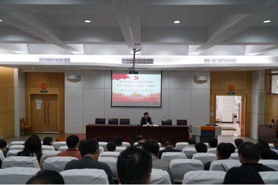 11月14日下午,在学术楼三号报告厅,学校召开处级干部会议学习宣传贯彻十九届四中全会精神,推动“不忘初心、牢记使命”主题教育更加扎实深入开展,党委副书记、纪委书记郭友鹏做辅导报告并部署工作。