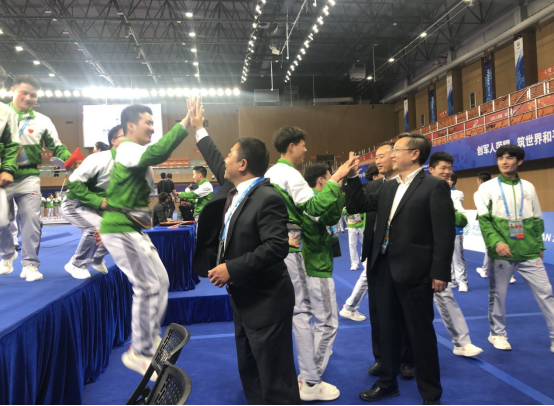赛事期间,美国、俄罗斯、伊朗等众多参赛国国防部、将军、武官和官员到现场观摩并参加颁奖仪式。国际军体执委会纪律委员会主任莱昂·德沃夫(LEON JOSEPH M.DE WULF)上校、国际军体摔跤项目运动委员会主任马尔科·科佩拉(MARKO KORPELA)先生、摔跤项目裁判长、土耳其GAZI大学哈利尔·易卜拉欣·西奇奥卢(Halil Ibrahim CICIOGLU)教授,国际摔联执委、中国摔跤协会主席张霞等对竞委会出色的工作给予高度评价。学校领导、摔跤竞委会领导马蜂书记、刘前信校长,党委副书记郭友鹏,副校长王路群、万国邦、孙美华坚守在赛事一线,并在赛事圆满结束后慰问工作人员和志愿者。