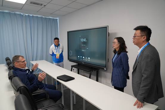 雨中,在相关人员陪同下,马尔科先生漫步校园绿道,参观校园湿地和校园客厅,对兼具人文与艺术之美、生态与和谐之韵的校园环境赞不绝口。孙美华副校长表示,虽然过程非常艰辛,但我们圆满完成了摔跤场馆的建设,每一处细节都认真落实,向世界传播了“绿色、共享、开放、廉洁”的办赛理念。我们将向世界来宾奉献一届令人难忘的摔跤比赛,搭建起友谊与和平的桥梁。