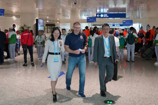 10月15日,国际军体摔跤项目运动委员会主任(PCSC)、芬兰国防部官员马尔科·科佩拉(MARKO KORPELA)先生抵达武汉。摔跤竞委会副主任、副校长孙美华及相关部门负责人前往天河机场热情迎接。欣赏着沿途窗外的风景,看到校园美景、摔跤场馆等照片,马尔科说,这是第二次来到武汉,武汉变得更美更有国际范儿了。他称赞军运会场馆体现“中国气派”,为摔跤竞委会细致周到的工作点赞。