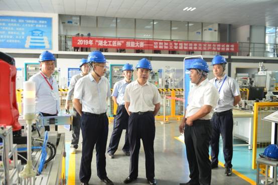 9月26日,2019年“湖北工匠杯”技能大赛——湖北省第三届智能制造应用技术职业技能大赛在我校开幕。省人力资源和社会保障厅副厅长曾向阳一行来校参观赛场并现场指导工作。此次大赛由省人力资源和社会保障厅、省教育厅、省科学技术厅、省总工会联合主办,武汉华中数控股份有限公司、武汉第二轻工业学校和我校承办,切削加工智能制造单元安装与调试、切削加工智能制造单元生产与管控、数控机床智能化升级改造、多轴联动加工技术、数字化设计与制造5个竞赛项目在我校相继开赛,共有210人参赛,我校派出18支队伍共34人参赛。