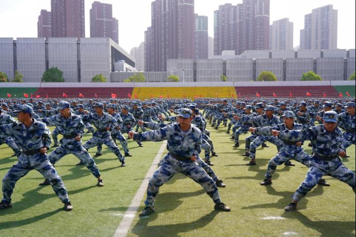 分列式表演中,各营各连共53个分列式连队、4个表演连队军姿整齐,军容整肃,2019级5918名受训新生英姿飒爽,目光坚定,等待接受检阅。在嘹亮的进行曲中,刘前信校长对受训连队进行检阅,一声声“同学们辛苦了”“为人民服务”道出了关心,喊出了士气。