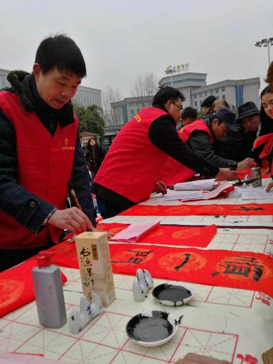 2018年2月9日,农历小年。我校艺术与传媒学院教师刘鄂南与武汉市十余所高校老中青书法家代表齐聚汉口火车站,在春寒料峭中挥毫泼墨,为南来北往的广大旅客送福写春联。