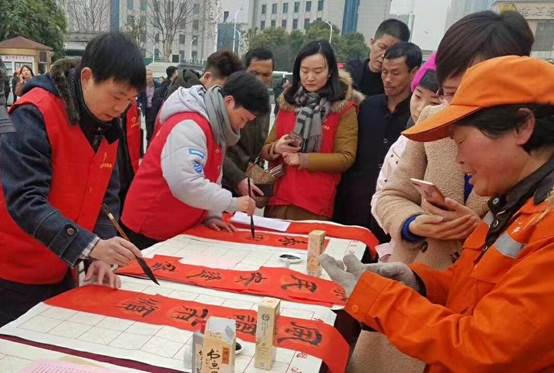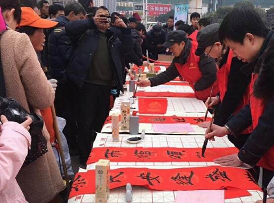 “千门万户瞳瞳日,总把新桃换旧符”,新春佳节是中国人一年中最隆重的节日,也是弘扬中华优秀传统文化最重要的日子。本次2018新春“荊楚文艺轻骑兵·温暖回家路”——湖北书法家“送万福进万家”公益活动由共青团武汉市委、武汉青年志愿者协会等单位和湖北省书法家协会高校分会联合举办,特邀湖北省书法家协会高等学校分会诸位书法家,走进汉口火车站,现场写春联送祝福,得到了南来北往旅客的交口称赞。活动充分展示了大武汉的文化品位,展现了荆楚高校老师们的儒雅和风度,体现了教育大省的文化水准。