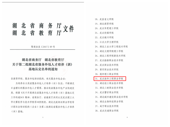 根据鄂商务发【2017】21号文件,我校顺利通过湖北省商务厅、教育厅认定,成功入选第二批省级服务外包人才培养(训)基地,将可享受“武汉城市圈教育综合改革实验区试点项目”、“湖北高校省级实习实训基地”、“湖北省服务外包人才培养(训)基地”等支持政策。