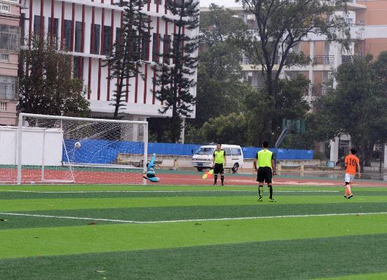 3月24日下午,风雨交加,我校因赛程调整转战北海一中,交叉赛对战湖南铁路职业学院,在全场90分钟中,双方1:1战平,最后点球大战,我队4:3胜出。