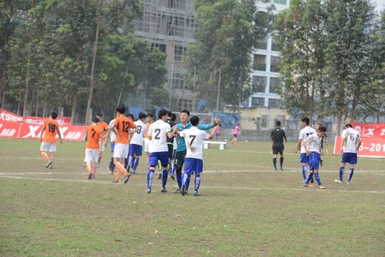 3月23日上午,我校足球队顽强拼搏,1:0力克金华职业技术学院足球队,以小组第三名进入第二阶段比赛,全队士气高涨。