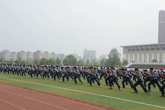 在激昂的《阅兵进行曲》中,军训分列式表演正式开始。26支方队雄赳赳气昂昂地踢着正步依次走过主席台接受领导检阅,女生方队意气风发,男生方队英俊刚强,自信的眼神,饱满的精神,为这美好的年华谱了一曲青春的赞歌。军体拳方队的精彩表演赢得了场上阵阵掌声。