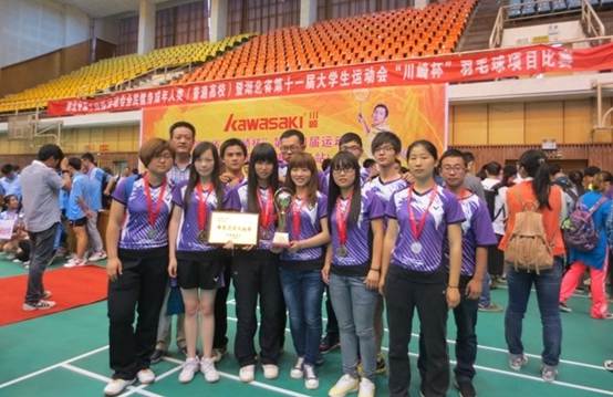 在5月9日至11日举行的湖北省第十四届运动会全民健身成人类(普通高等院校)暨第十一届大学生运动会羽毛球比赛中,我校羽毛球队在领队朱智泉、教练员张诗雄的精心指导下,在赛场上顽强拼搏,团结协作,最终夺得女子团体亚军、男子团体第五名、混双第一名、女子双打亚军、女子单打第三名等优异成绩。