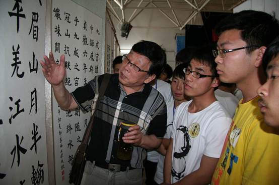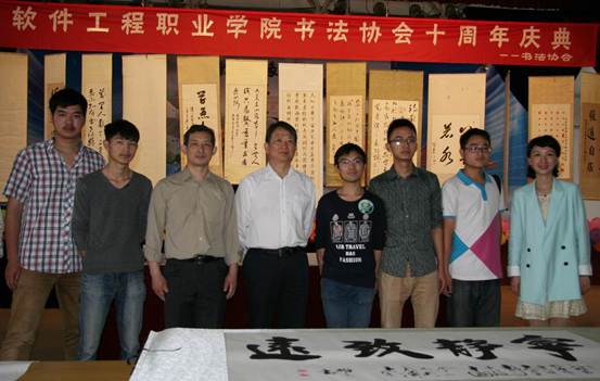 校领导胡大平、马蜂、戴向军专程来到活动现场,参观展出的作品,并听书法协会指导教师李建强副教授介绍书法协会近年的发展和取得的荣誉。