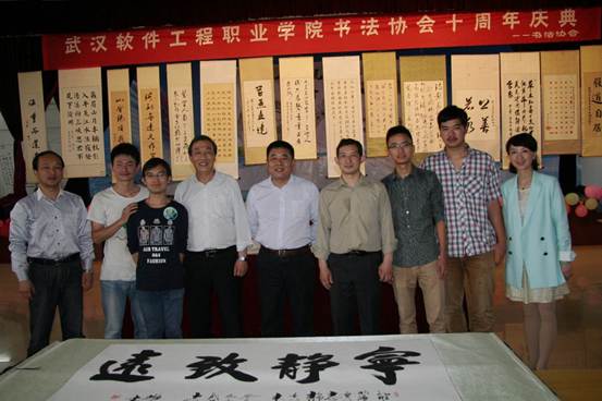校长马蜂、党委副书记戴向军与部分书法作者合影