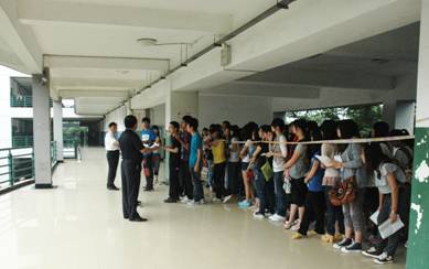 为了出色完成我校考点任务,校党委和行政高度重视。党政一把手亲自指挥,学校上下全体动员。各院系部精心选派了500余名认真负责、经验丰富的老师从事监考和考务工作;总务处将考试期间全体工作人员的衣食住行安排地井井有条;保卫处制定了安全保卫实施方案,全面部署安保工作;教务处悉心指导、全力支持整个考试的考务工作;团委设置了八个“志愿者服务站”,组织了近百名学生志愿者为考生提供引导和咨询服务;软件学院、实训中心和现教中心为电算化机试提供了技术支持;党政办、财务处等部门协调考务工作、调配考务资金。