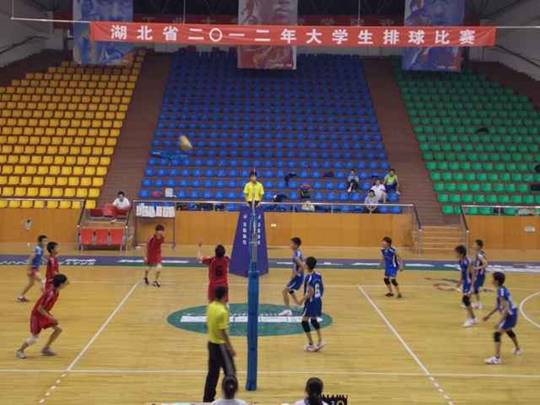 2012年湖北省大学生排球赛现场(右侧为我院男子排球队)
