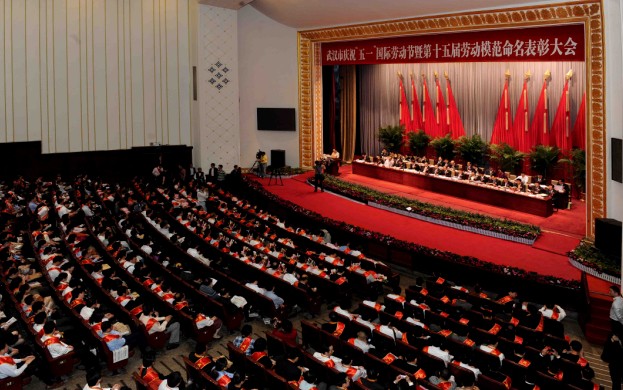市长唐良智主持会议。中华全国总工会书记处书记李滨生致辞。市委常委、市总工会主席朱毅,副市长秦军分别宣读了表彰决定。大会授予我校王路群教授等516人武汉市第十五届“劳动模范”荣誉称号,领航动力信息系统有限公司等48个先进集体获颁“武汉五一劳动奖状”,长报集团周超等137名先进个人获颁“武汉五一劳动奖章”,大会授予武钢股份炼铁厂八号高炉车间等61个先进集体“武汉工人先锋号”荣誉称号。劳模代表胡惊雷、陈伟、刘五桥在会上发言,陈祖顺代表全市劳模宣读倡议书。