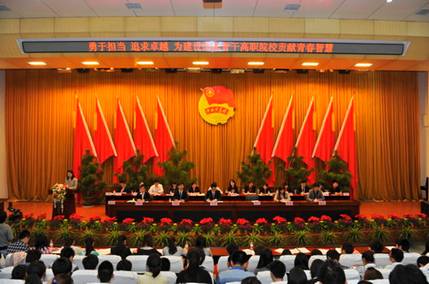 团委副书记黄俊亮同志代表共青团武汉软件工程职业学院第一届委员会作了题为《勇于担当 追求卓越 为建设国家骨干高职院校贡献青春智慧》的报告。