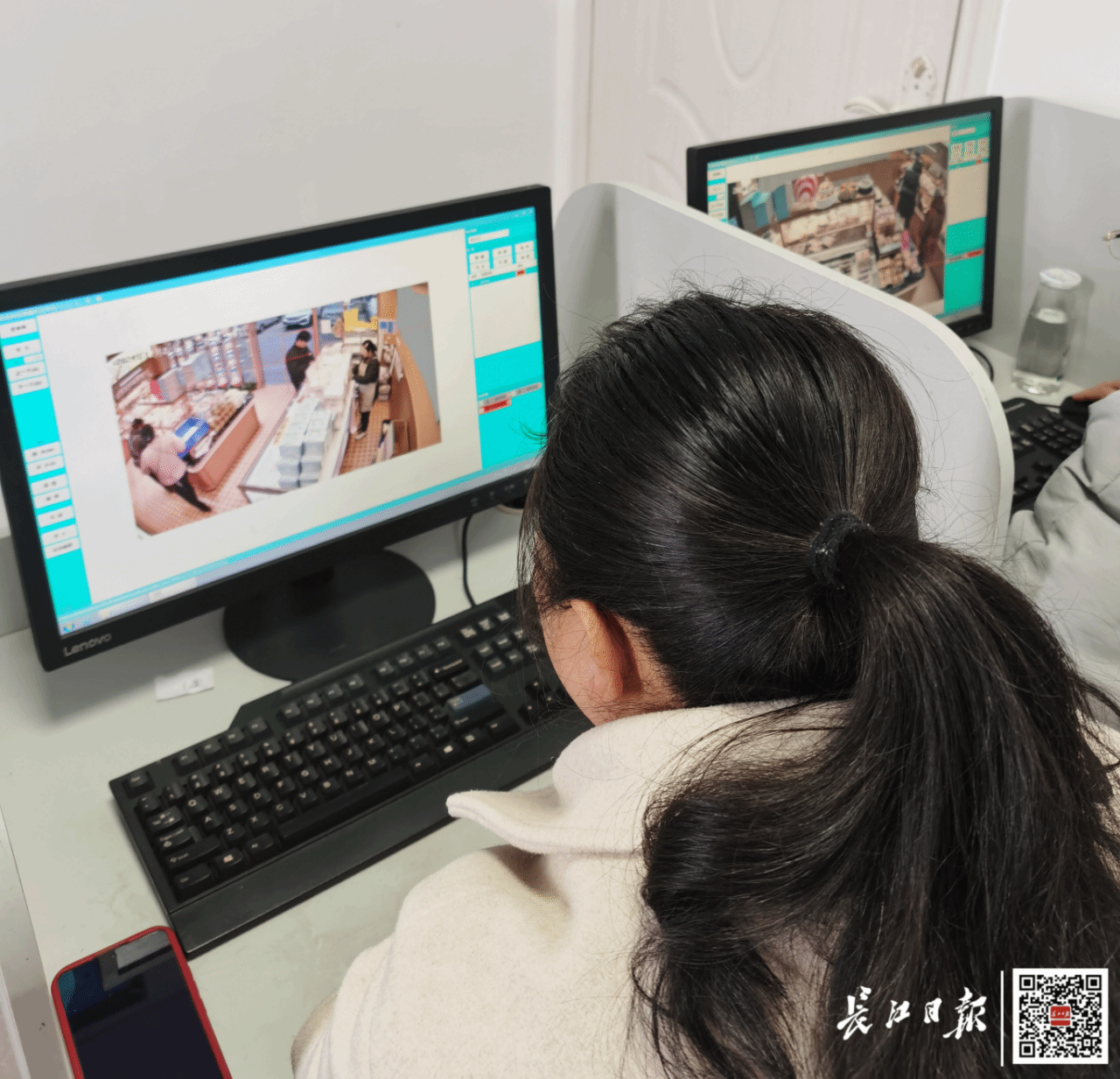 李贝贝告诉记者,她们接到的这批订单,就是要把10000多张监控图里的人物,全部用红色线框“标注”出来,交给人工智能系统进行学习训练,认识“什么是人”。