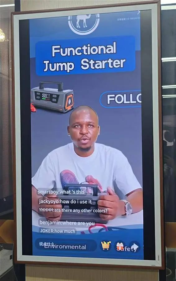 南非公派留学生以自己形象做的AI数字人正在屏幕上直播带货。湖北日报全媒记者 李玉麟 摄