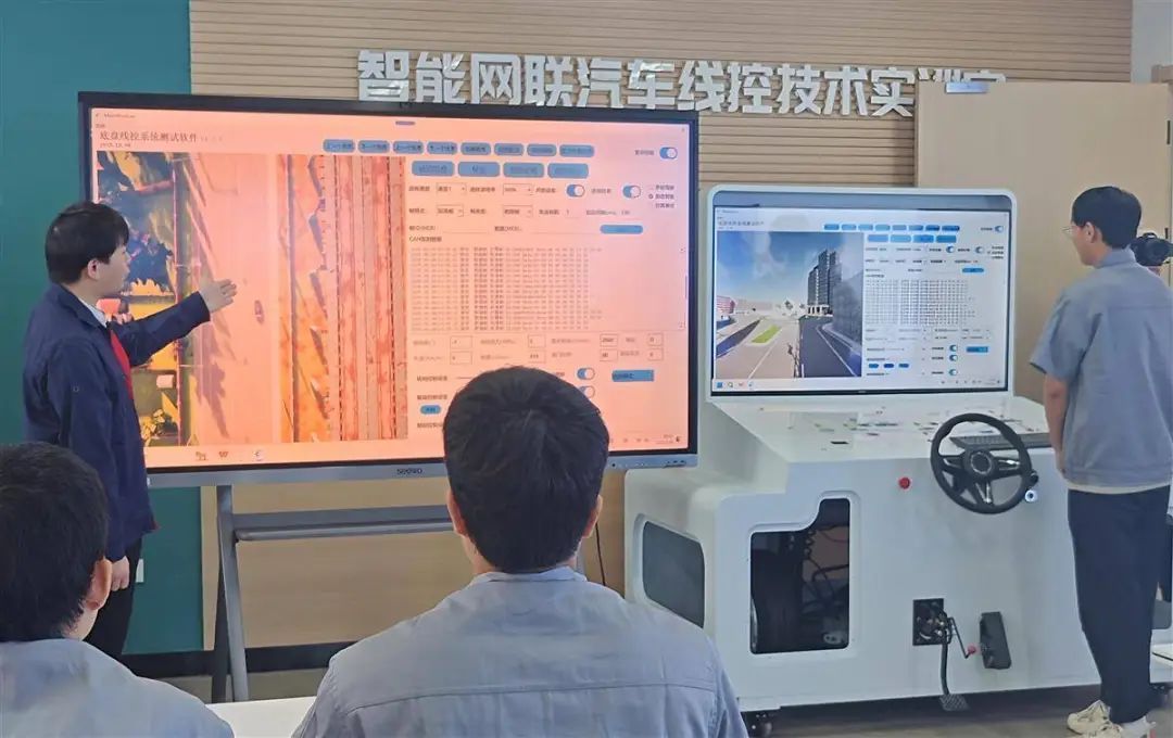 不用躺在车底,也无需满身油污,只需在电脑上输入参数,便可检验无人驾驶汽车的底盘线控。这是5月8日湖北日报全媒记者在武汉软件工程职业学院见到的一幕。