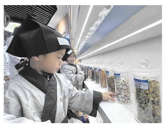 中药标本馆内,不仅有琳琅满目的中药标本,更配备了AI虚拟仿真与互动体验设备。百余种珍稀中药标本在AR技术辅助下“跃然纸上”,孩子们通过数字屏触摸“数字中药”,感受跨越地域的中药魅力。