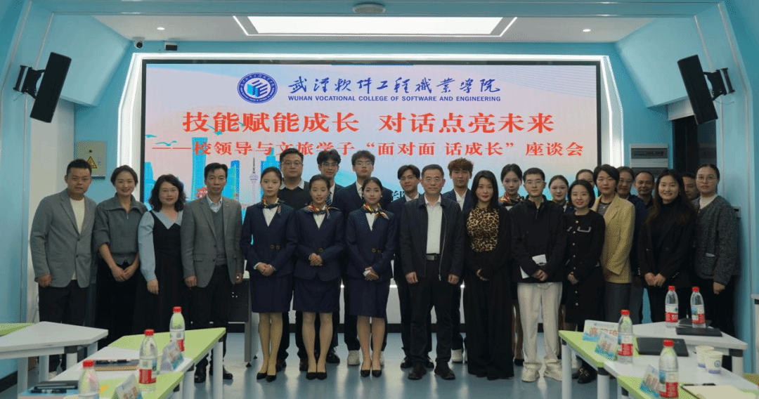 10月29日下午,武汉软件工程职业学院党委书记蒋兴鹏和校企合作单位代表一起走进该校文化旅游学院2230“一站式”学生社区,与该学院学生代表聚焦技能提升,共话发展路径。不少企业代表看到学生们自信展示和大方谈吐,当场对学子喊话,希望学生们毕业后到自己的企业去。