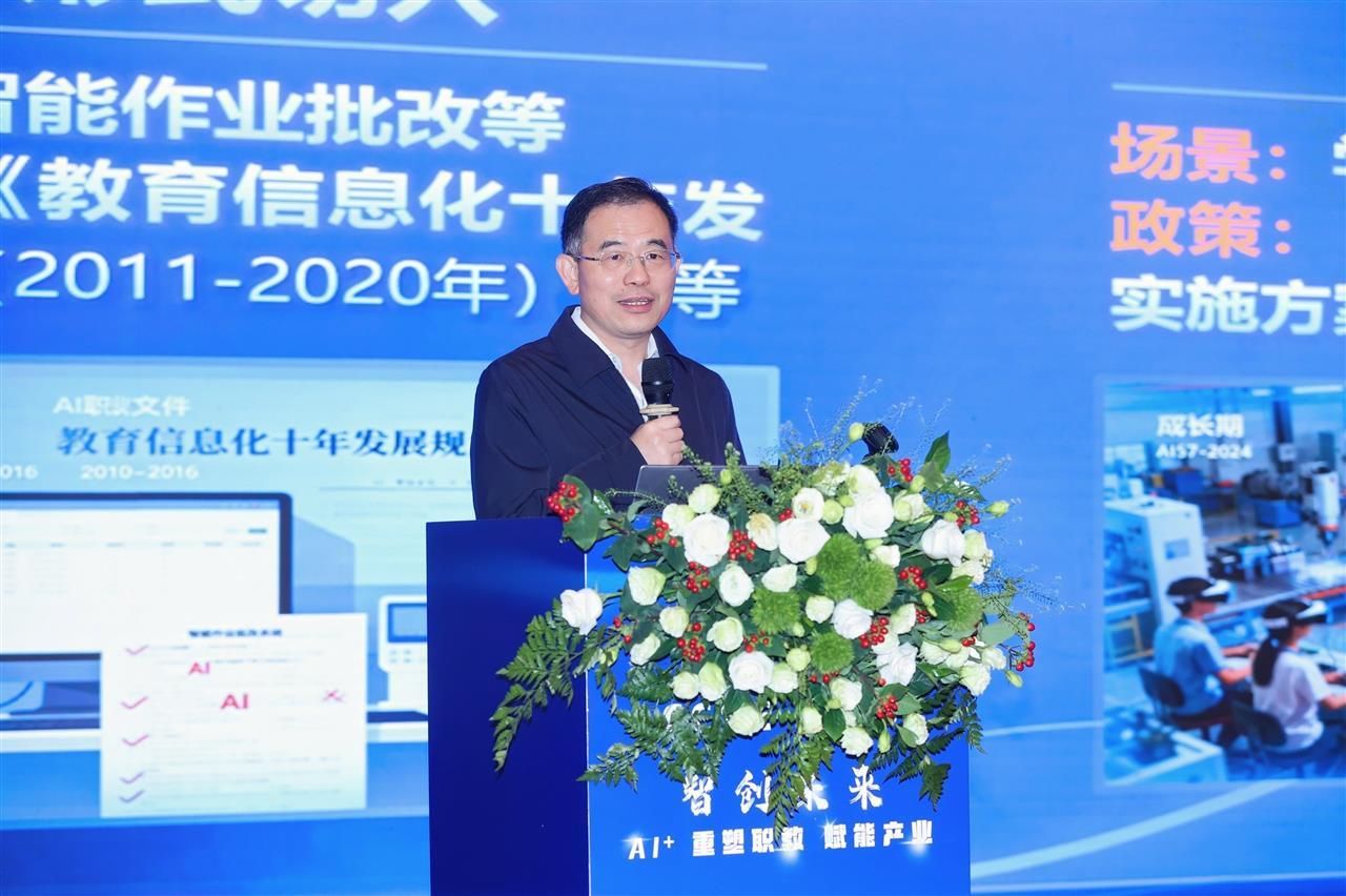 高等教育出版社智慧职教发展中心主任、党支部书记、国家职业教育智慧教育平台运维负责人周先海作“AI赋能的国家职业教育智慧教育平台建设与应用”主题报告