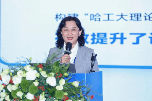 ▲河南职业技术学院校长夏新颜作“‘科创引领 AI赋能 多元协同’理工职业院校人才培养创新实践——以河南职业技术学院为例”主题报告