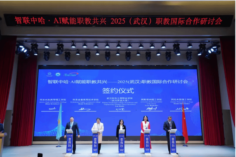 10月31日,“智联中哈·AI赋能职教共兴”2025(武汉)职教国际合作研讨会在我校学术楼1号厅召开。本次研讨会由湖北省教育厅、哈萨克斯坦教育部直属机构“TALAP”指导,武汉软件工程职业学院(武汉开放大学)与烽火通信科技股份有限公司联合主办,湖北开放大学(湖北科技职业学院)、武汉交通职业学院协办,武汉美和易思数字科技有限公司、KazakhstanKidsGoTechnology.,LTD提供支持,以AI技术为纽带,搭建中哈职业教育深度合作平台。