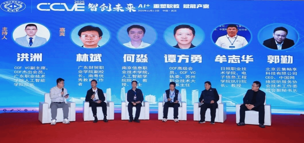 2025年11月2日,由中国计算机学会(CCF)主办,CCF职业教育技术委员会(CCF VC)与武汉软件工程职业学院共同承办的第九届CCF职业教育大会(CCVE 2025)在武汉圆满举行。大会以“智创未来:Al+重塑职教,赋能产业”为主题,共设置三大主论坛,三大平行论坛,一个重要计划启动,聚焦“AI+职业教育”“AI+技术创新”“AI+产教融合”“AI赋能五金建设”“智能+产业人才培养”“多模态人工智能与职业教育”六大主题,多维度深入探讨AI 与职业教育、产业发展的融合路径与实践创新。