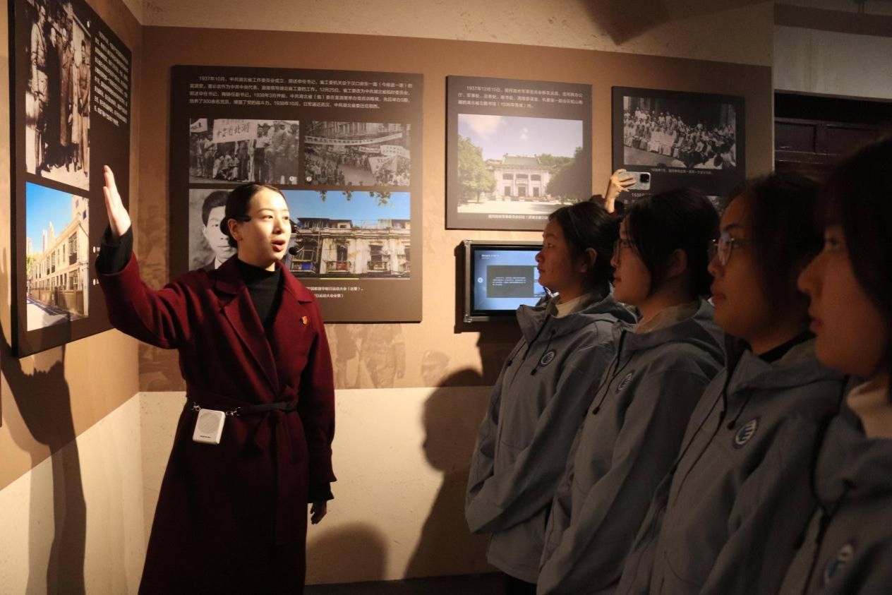 活动伊始,双方领导和师生代表在纪念馆讲解员的带领下,共同参观“烽火流金 江城壮歌——武汉抗战遗址展”。通过文物史料重温革命历史,在沉浸体验中感悟初心使命。