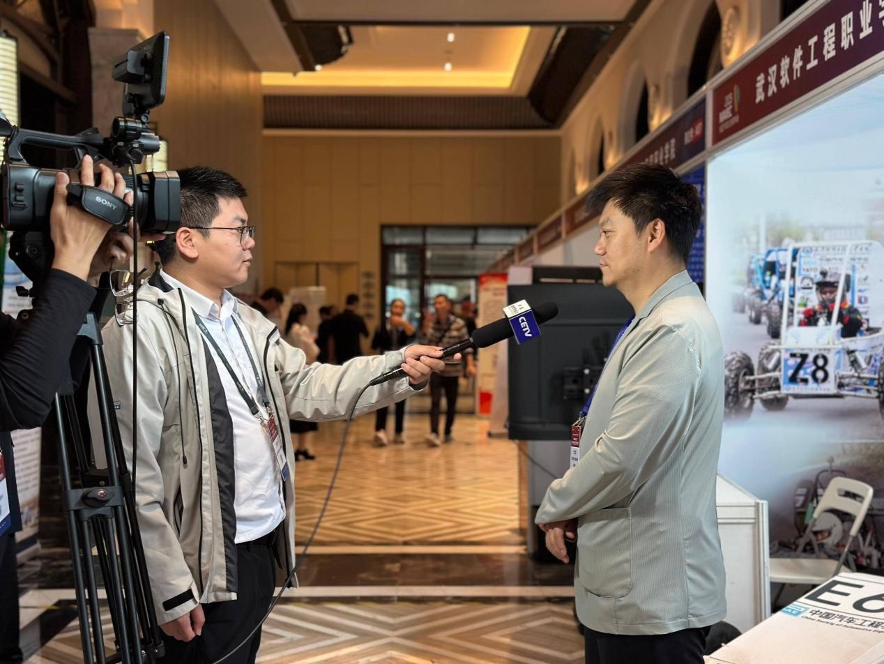 学校展区采用固定展区与互动体验相结合的模式,通过宣传片、宣传展板全面介绍学校发展概况、汽车工程学院专业建设特色、人才培养成效、产教融合实践及文化育人成果等。中国大学生方程式赛车实物展示及互动体验方式,宣传了武软“光谷之翼”车队。学校凭借前沿技术成果与创新实践案例引发参会企业及院校广泛关注,获中国教育电台专题采访。