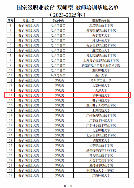 (通讯员 高淼、谢日星)12月9日,教育部发布《关于公布国家级职业教育“双师型”教师培训基地(2023-2025年)的通知》,我校机械工程学院牵头申报的装备制造大类机械设计制造类双师培训基地、计算机学院作为第一核心成员的电子与信息大类计算机类双师培训基地,双双成功入选国家级职业教育“双师型”教师培训基地。