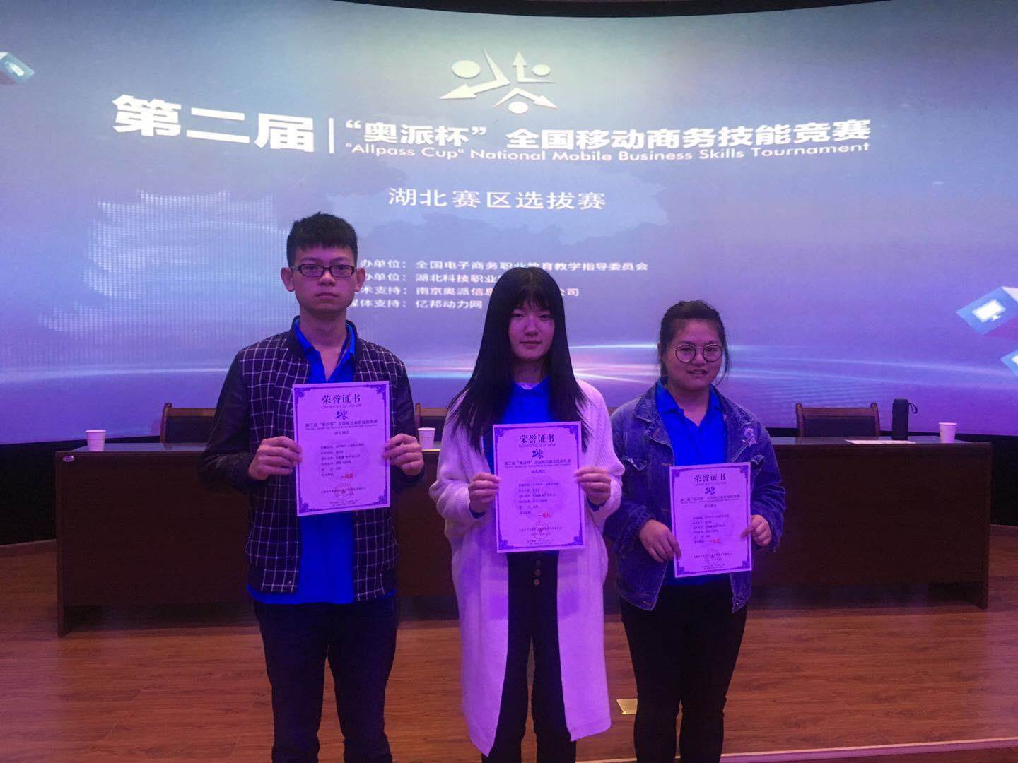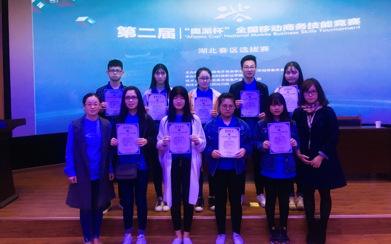 10月28日,由全国电子商务职业教育委员会主办的2017“奥派杯”全国移动商务技能竞赛湖北省省赛在湖北科技职业学院落下帷幕。我校商学院电子商务专业胡莹、马明明老师指导的“夏花队”在本次大赛中获得一等奖,成功进入国赛;“阳光小队”和“开心麻花队”在大赛中获得二等奖。“夏花队”同时获最佳设计单项奖,胡莹、马明明老师分别获得优秀指导老师奖,我校获得最佳组织奖。