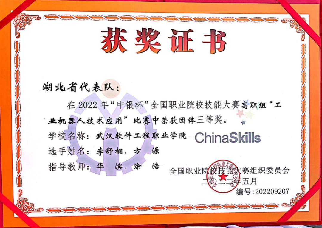 “工业机器人技术应用”赛项三等奖